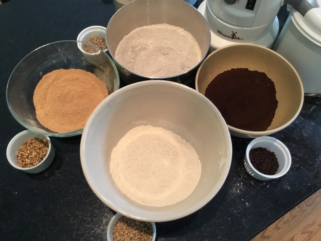 The various grains are so rich in color, and their smell is pretty intense too. I love experimenting with bread and can’t wait to taste the nuances of each loaf. Not everyone is passionate about the same things. I have to remember that; especially when I get caught up in moments of bread-dom and faith-dom. But I’m always willing to share!