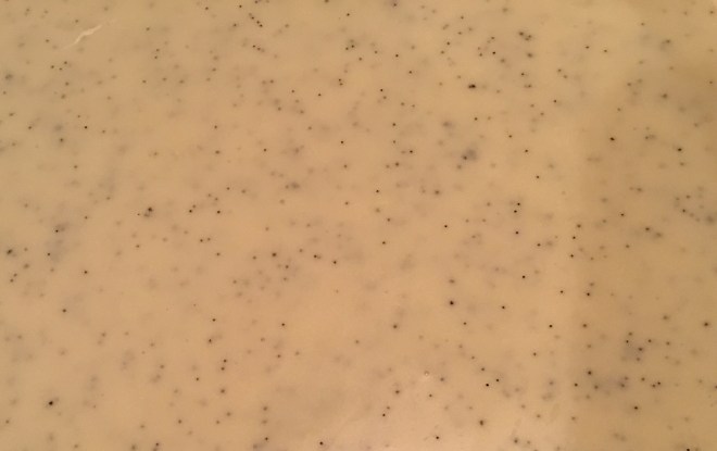 I have some delicious ripe peaches waiting to be eaten, but they don’t last long once ripe. So I tried to decide what to make with this fresh deliciousness that only summer produce can bring. I love crisps, especially with ice cream, and I had all the ingredients on hand to make vanilla bean ice cream. I’ve been storing vanilla seeds from the first batch of vanilla made two years ago, so this seemed like the perfect time to use some. It didn’t take long to mix the custard base, so now it’s cooling and will be ready to churn tomorrow. Viewing the custard, it looks a bit like constellations of stars in a creamy white sky. A version of the Milky Way? Maybe not. I may have overdone it a bit on the quantity of vanilla seeds, but I’m pretty sure that can only be a good thing.