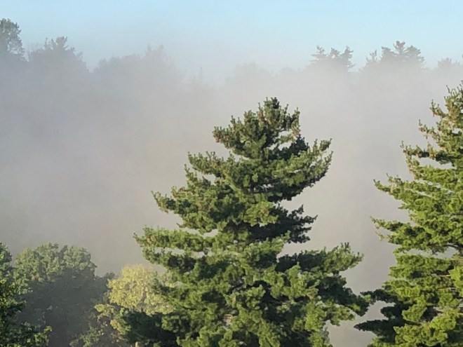 Brother Placid is a monk from Latrobe, PA, who convinced me to join Facebook in 2017, to share my stories of faith. A gifted person in many ways, with a keen eye for seeing the sacred in the art of photography, he recently posted a photo from Saint Vincent Archabbey entitled “Touching a Cloud”; a reminder to me that we are all connected. So I messaged him a few pictures I took this morning of the thick clouds at Saint Meinrad in Southern Indiana. As I walked back from Vigils and Lauds, the deep fog reminded me of a blanket spread out over all creation, touching me, you, and people around the world.